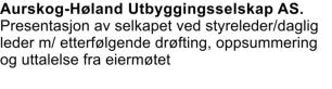 Aurskog-Høland Utbyggingsselskap AS. Presentasjon av selkapet ved styreleder/daglig