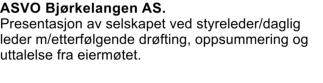ASVO Bjørkelangen AS. Presentasjon av selskapet ved styreleder/daglig leder m/