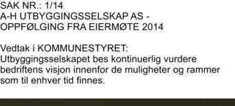 A-H UTBYGGINGSSELSKAP AS - OPPFØLGING FRA EIERMØTE 2014
